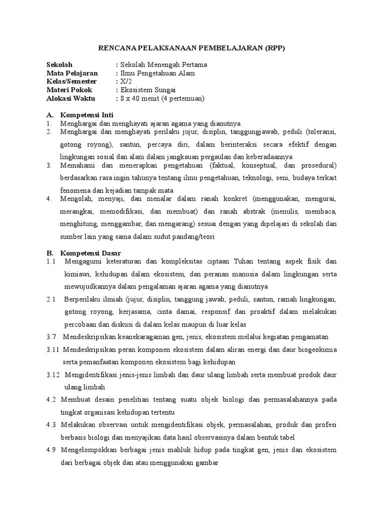 1 2 dan 3 alokasi waktu. 4 minggu x 3 jam pelajaran @45 menit. Peran guru, kurikulum 2013, rpp dan sekolah menengah. 1.1 mengagumi keteraturan dan kompleksitas ciptaan tuhan tentang keanekaragaman hayati, ekosistem, dan lingkungan hidup. Ekosistem sendiri merupakan sekumpulan organisme baik tanaman maupun hewan yang saling berinteraksi satu sama lain juga dengan .